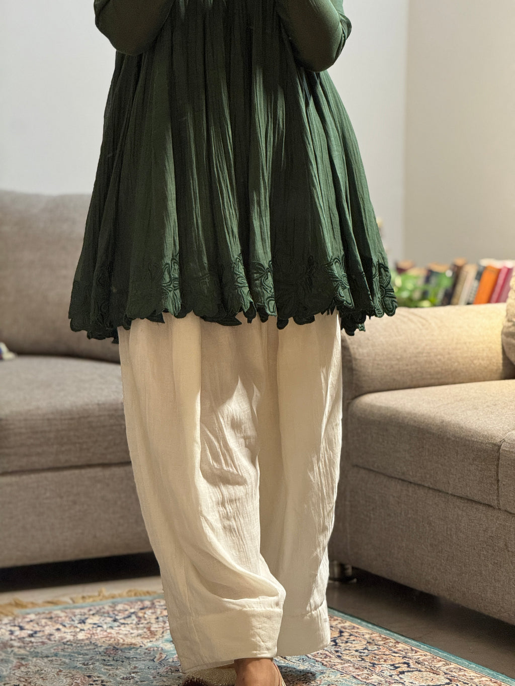 Olive green Mul chanderi embroidered Anarkali with Farshi Salwar