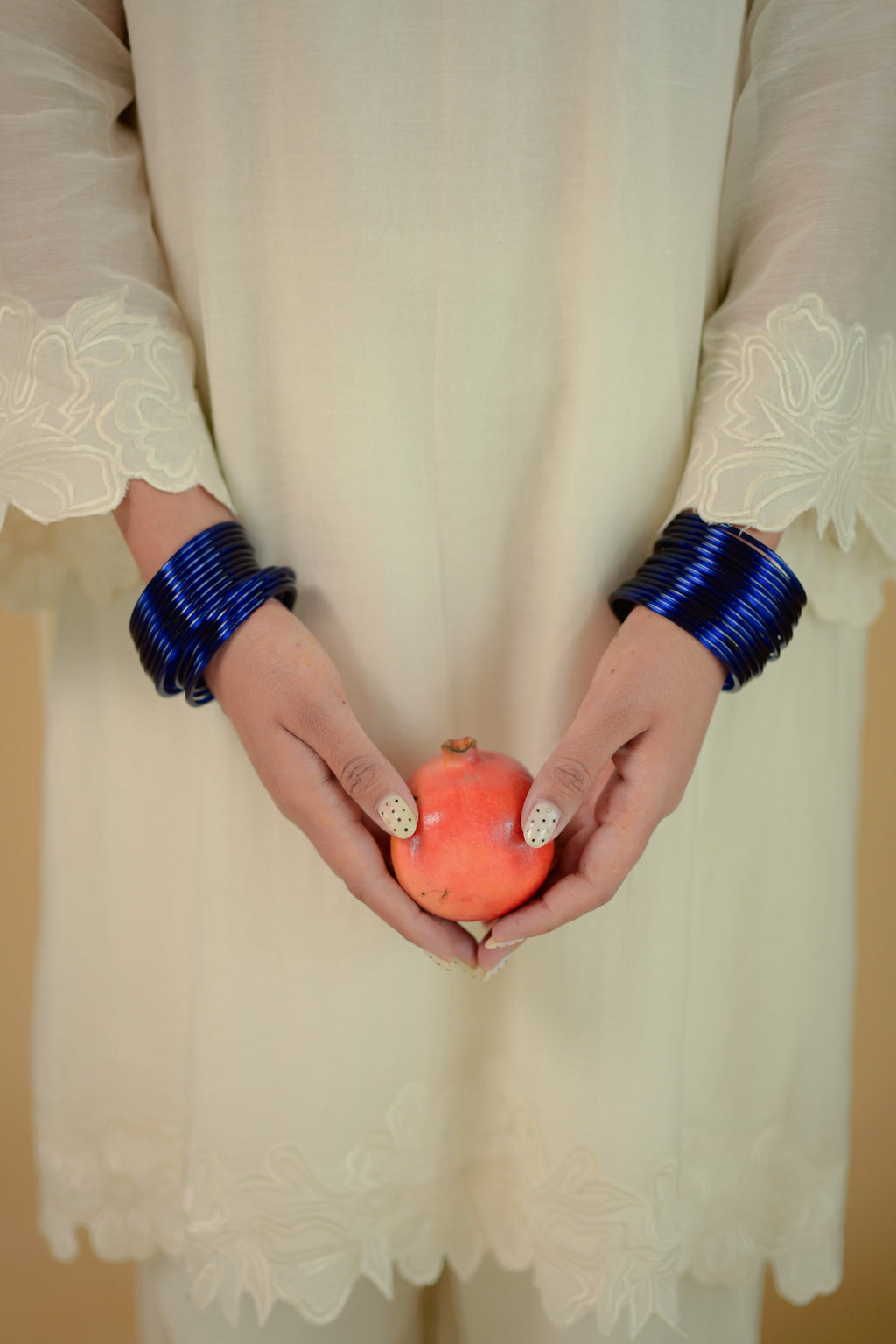 Short Royal Blue Mul chanderi Farshi salwar Kurta set of 3